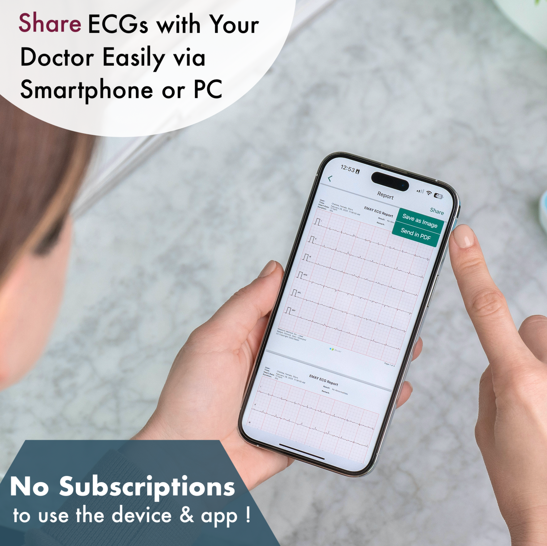 - Record and store ECG signals, and display heart rate for home health care use. There is no subscription or hidden cost required to use the device & app.