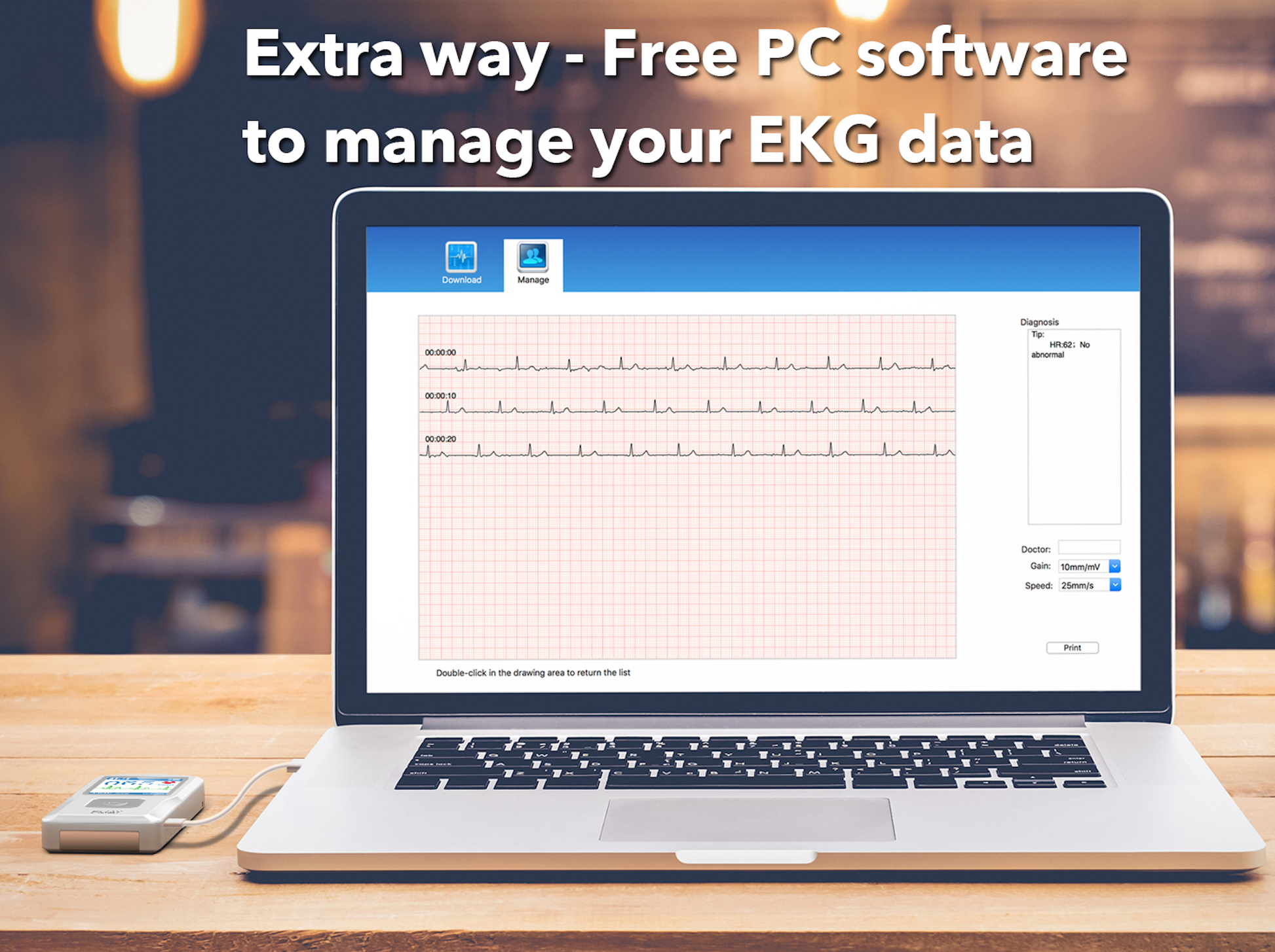 - Easy to use and compact size to record 30 seconds' ECG and heart rate between your hands anytime anywhere. Keep track of your health regularly and share data with your doctor without subscription or limitation.