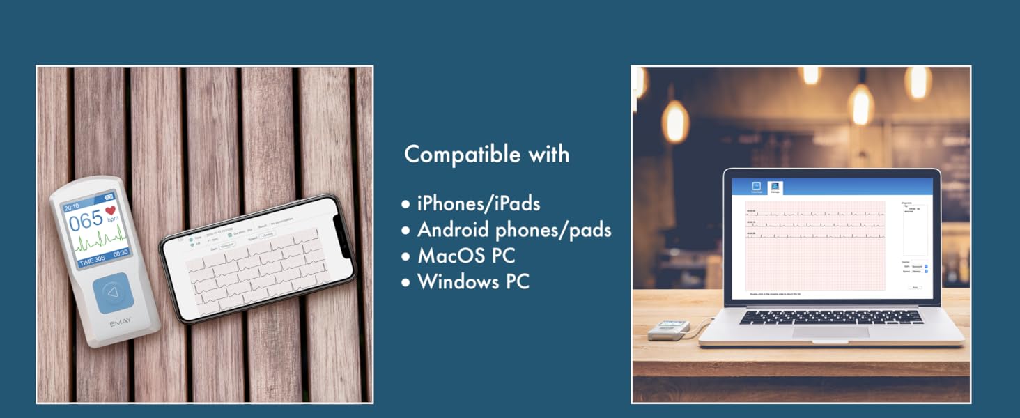 - Record first, sync later to the provided EMAY app and PC program for bigger review and easy sharing of your data.